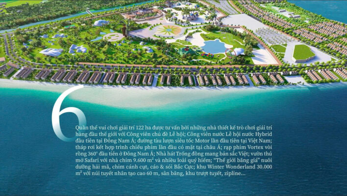 Quy mô ~122 ha, thiết kế bởi chuyên gia quốc tế bao gồm: công viên chủ đề, công viên nước hybrid đầu tiên tại Đông Nam Á, vườn thú bán hoang dã với nhà chim 9.600 m², khu băng tuyết Winter Wonderland Top 5 thế giới.