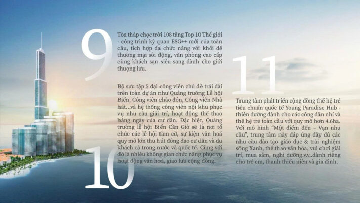 Dự án được định hướng phát triển theo mô hình “đô thị sinh thái biển” với tiêu chí ESG++ gồm Xanh – Thông minh – Sinh thái & Tái sinh.