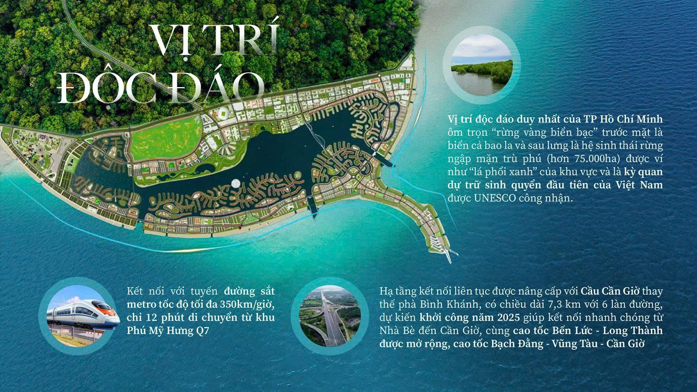 Với vị trí đắc địa, tiện ích đồng bộ và quy hoạch bài bản, dự án không chỉ là không gian sống lý tưởng mà còn là điểm đến du lịch nghỉ dưỡng hấp dẫn, góp phần thúc đẩy phát triển kinh tế – du lịch cho khu vực Cần Giờ và TP.HCM.